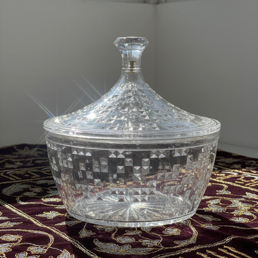 Square Acrylic Date Bowl with Lid – Modern Diamond-Cut Design (M)