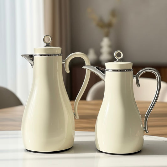 PILSCO Premium Double Set – Coffee & Tea Thermal Flask (White & Gold, 1L + 0.7L)