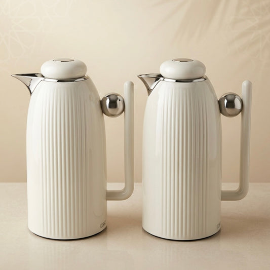 Premium Stainless Steel Dallah Set – White/Chrome