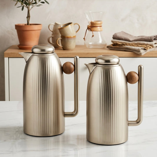Premium Stainless Steel Dallah Set – Chrome/Wood