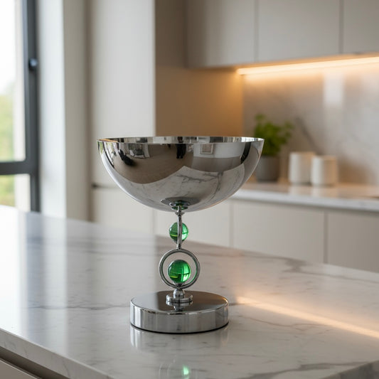 Mawaeen Premium Fruit Bowl – Stainless Steel Base with Green Crystal Accents (S)