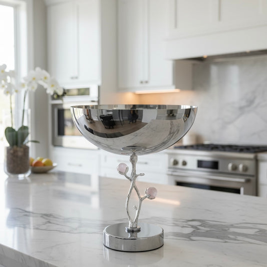 Mawaeen Modern Metal Candy Stand with Crystal Accent – Silver Finish