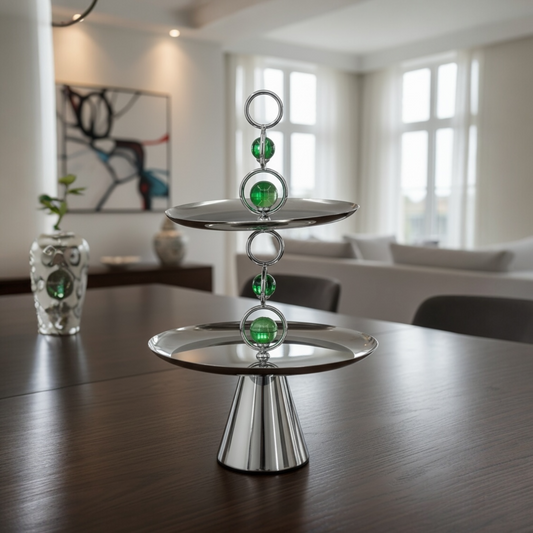 Mawaeen 3-Bowl Snack Stand – Small Stainless Steel Design with Green Crystal Handle