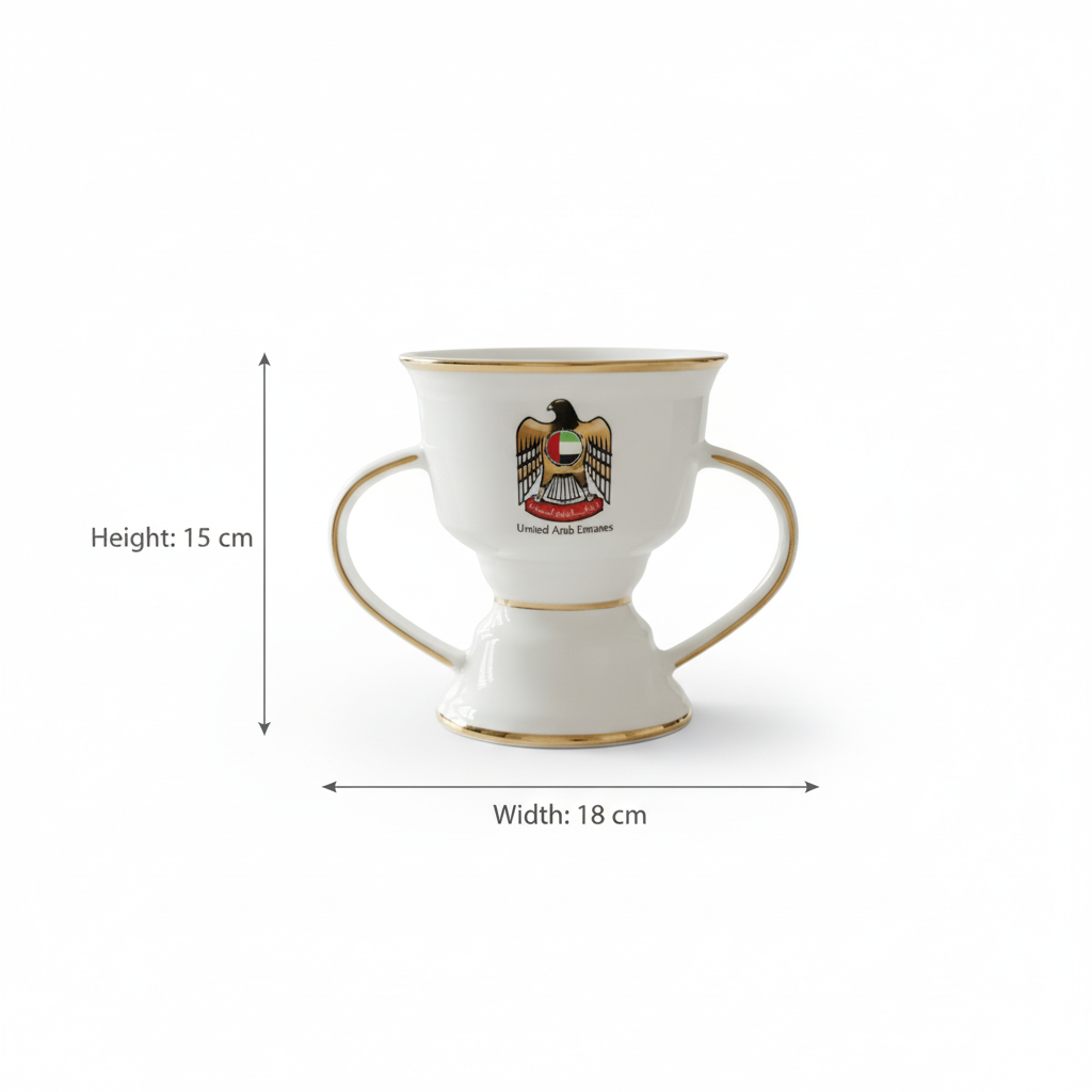 A luxurious large incense burner featuring the UAE emblem on elegant white ceramic with fine golden accents. Designed with graceful side handles and a wide opening for smooth incense diffusion, it brings a royal touch to spacious living rooms, majlis, or offices.