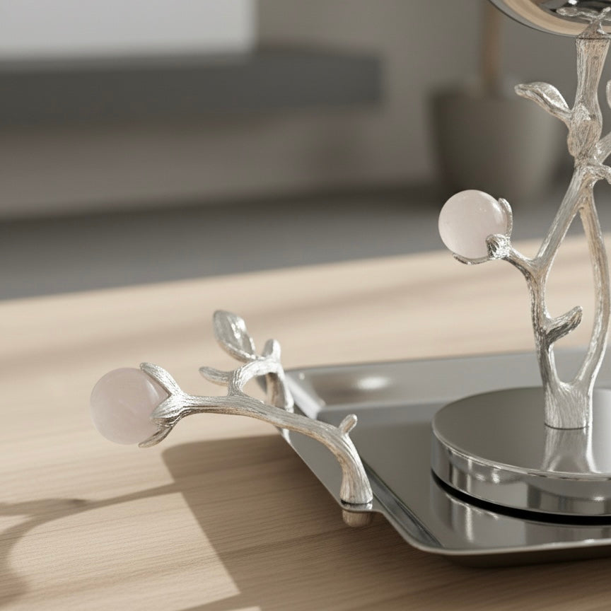 The stylish serving tray adds a touch of glamour, perfect for showcasing the set. Designed to elevate your home ambiance, it fills your environment with a warm, luxurious fragrance. Ideal as a sophisticated gift or for enhancing your own living space, this set embodies elegance and tranquility.