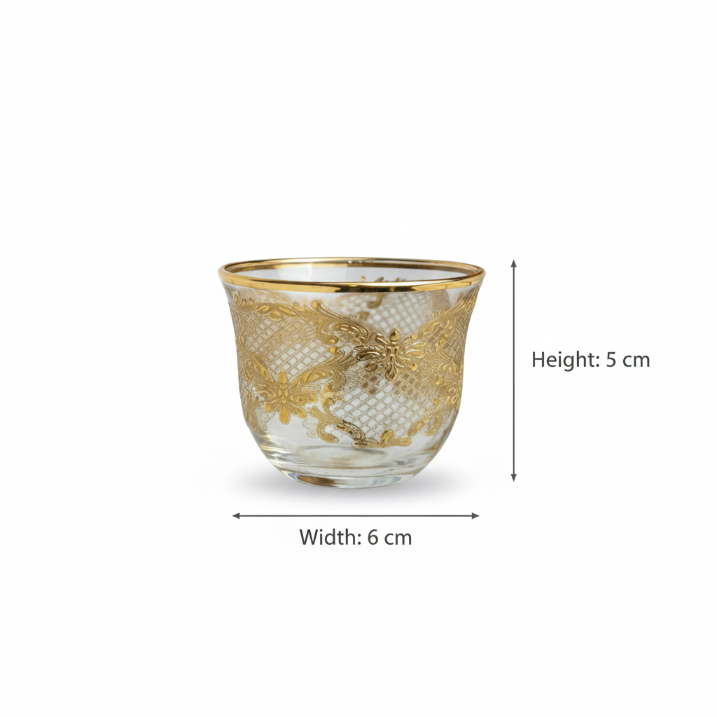 Each cup is made in Turkey from premium glass, featuring a beautifully hand-drawn ornamental design inspired by classical Ottoman and Arabic motifs.
