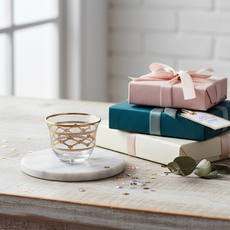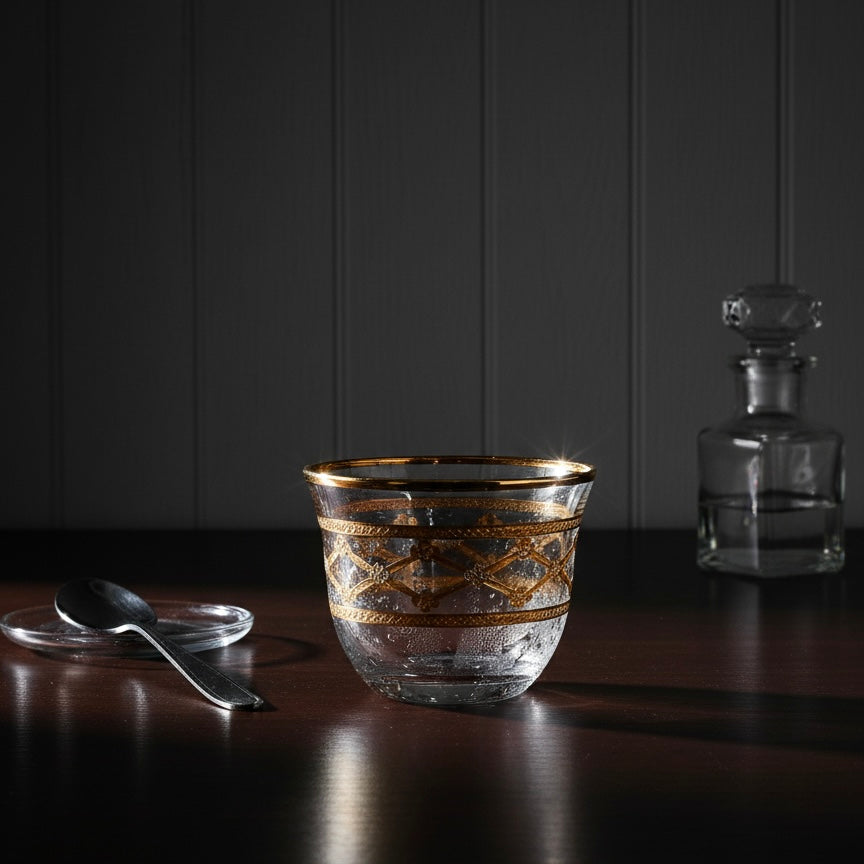 Each cup is made in Turkey from premium glass, featuring a beautifully hand-drawn ornamental design inspired by classical Ottoman and Arabic motifs.