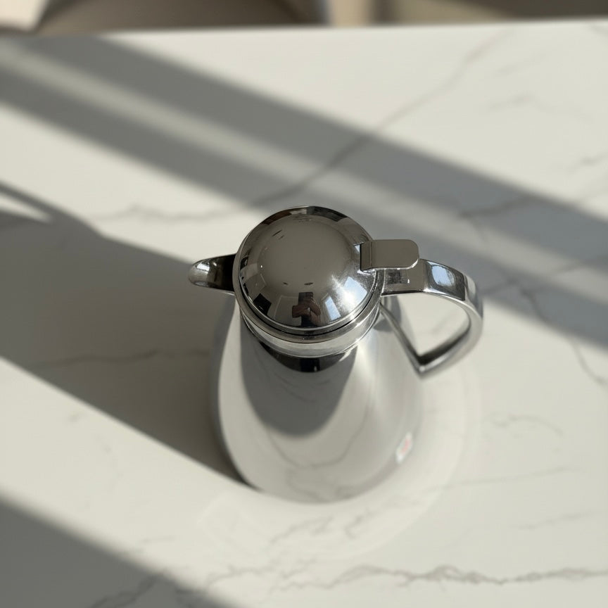This premium Silver dallah with silver detailing is designed to preserve the warmth and aroma of your coffee while adding a refined style to your serving setup.