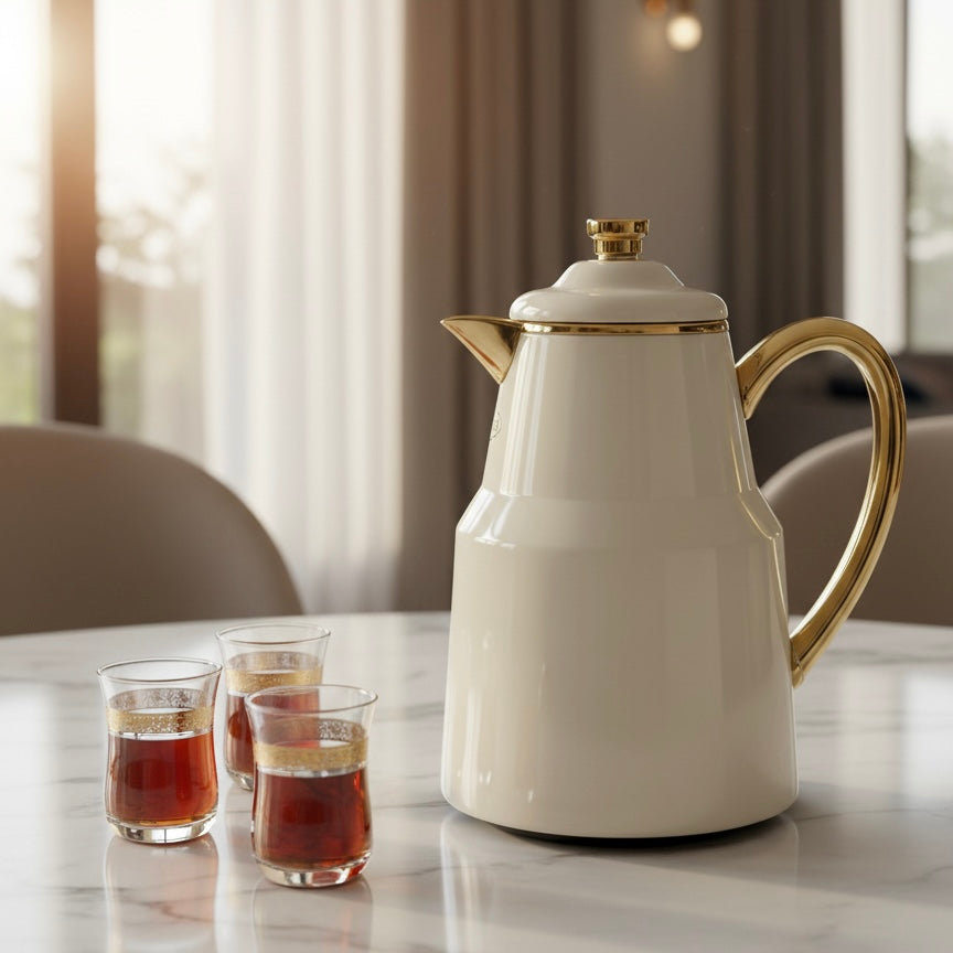 With its sleek beige design and high-quality build, it’s perfect for serving Arabic coffee or tea in a refined way, whether at home, in the office, or on the go.