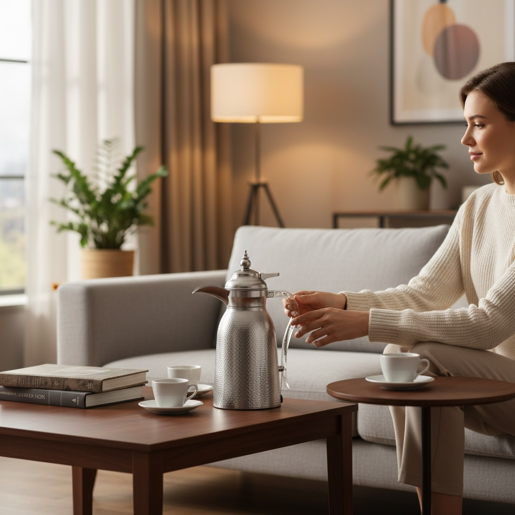 This premium 2-piece flask set from Nice is designed for everyday use and elegant serving. Crafted with a durable stainless steel exterior and a high-performance insulated interior, each flask keeps your beverages hot for up to 9 hours, making it perfect for serving Arabic coffee, tea, and other hot drinks throughout the day.