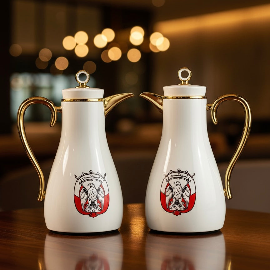 Bring elegance and warmth to your serving moments with this premium PILSCO Abu Dhabi Logo thermal dallah set, specially designed for Arabic coffee and tea.