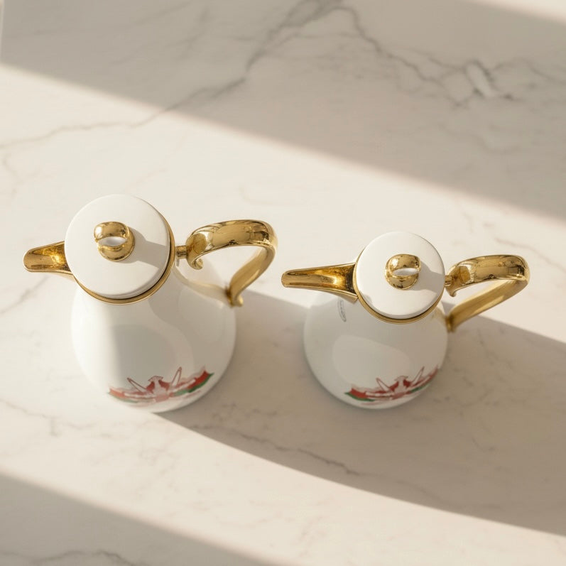 PILSCO Oman Logo Double Set – Coffee & Tea Thermal Flask (White & Gold, 1L + 0.7L)