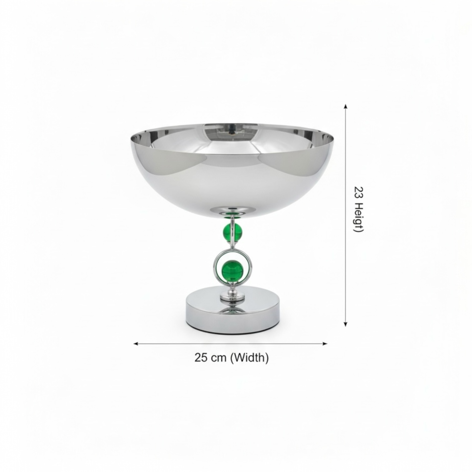 Mawaeen Premium Fruit Bowl – Stainless Steel Base with Green Crystal Accents (L)