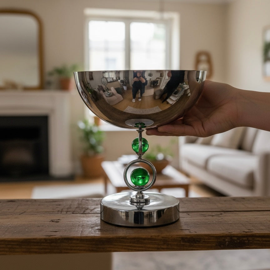 Mawaeen Premium Fruit Bowl – Stainless Steel Base with Green Crystal Accents (S)
